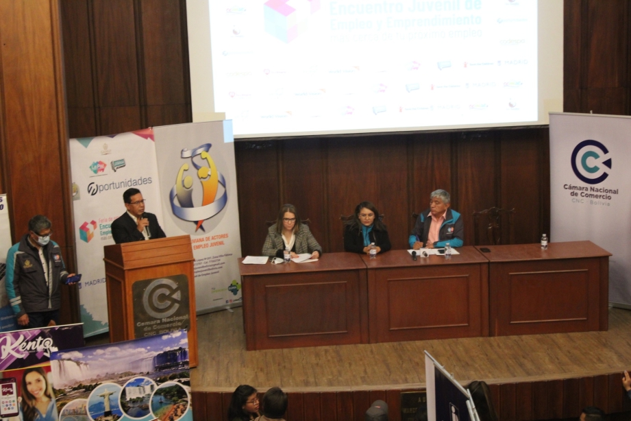 La RED BOLIVIANA DE ACTORES POR EL EMPLEO JUVENIL, junto al Gobierno Autónomo Municipal de La Paz (Instituto de la Juventud) y la Cámara Nacional de Comercio han recibido en el "Encuentro Juvenil de Empleo y Emprendimiento" a más de dos mil quinientos jóvenes postulantes a alguna fuente laboral o para realizar un emprendimiento propio en las jornadas desarrolladas entre el 29 y 30 de junio